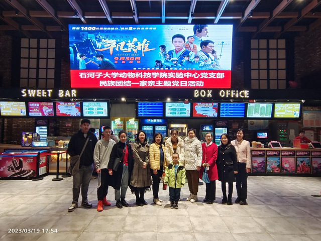 2023年3月19日下午,动物科技学院实验中心党支部开展了“观红色电影·守党员初心”暨“民族团结一家亲”主题党日活动,实验中心全体教职工与“小亲戚”一同观看了电影《平凡英雄》,并结合实验中心工作和职责,谈使命、谈担当。