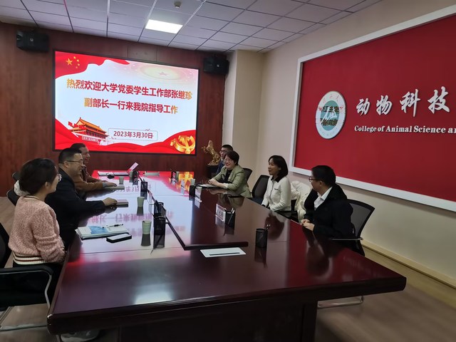 3月30日上午,石河子大学党委学生工作部副部长张继珍、石河子大学就业办公室主任王龙淼、易班发展中心主任刘红勤、石河子大学就业办公室雷亮老师赴动物科技学院开展座谈调研。动物科技学院党委副书记郭玉堂,学院学生工作办公室全体参加了会议。会议由动物科技学院学生工作办公室主任冯广余主持。