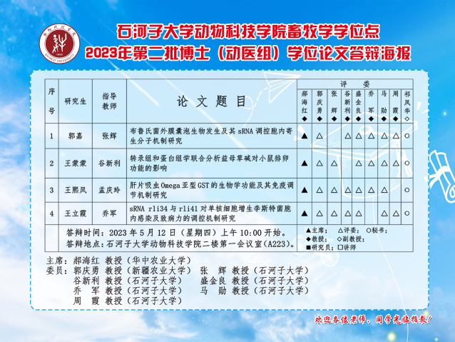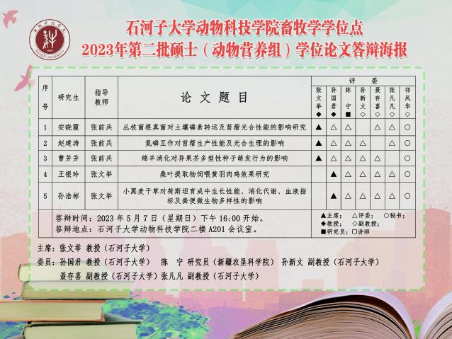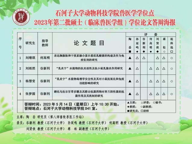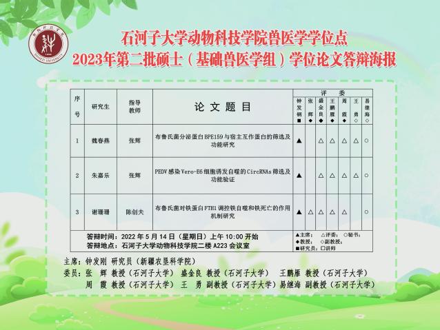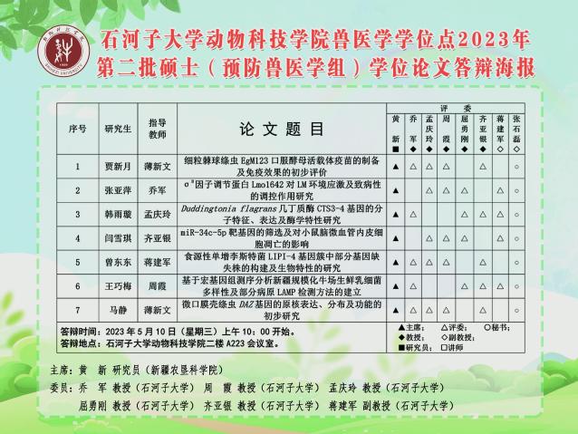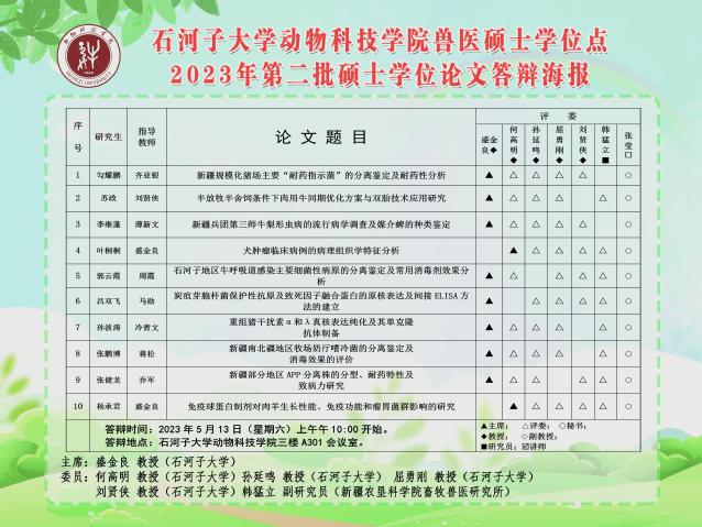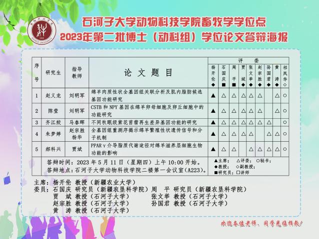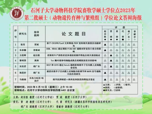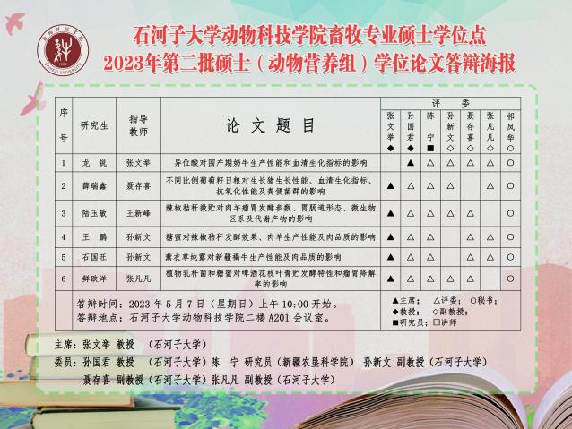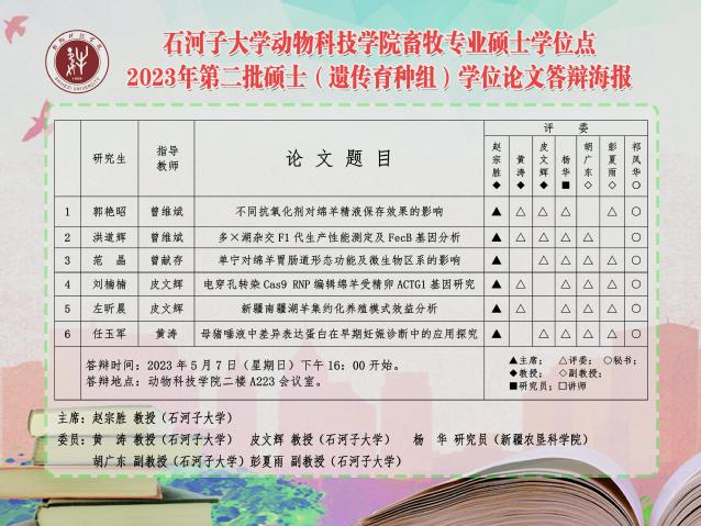 石河子大学动物科技学院2023年第二批硕士学位论文答辩