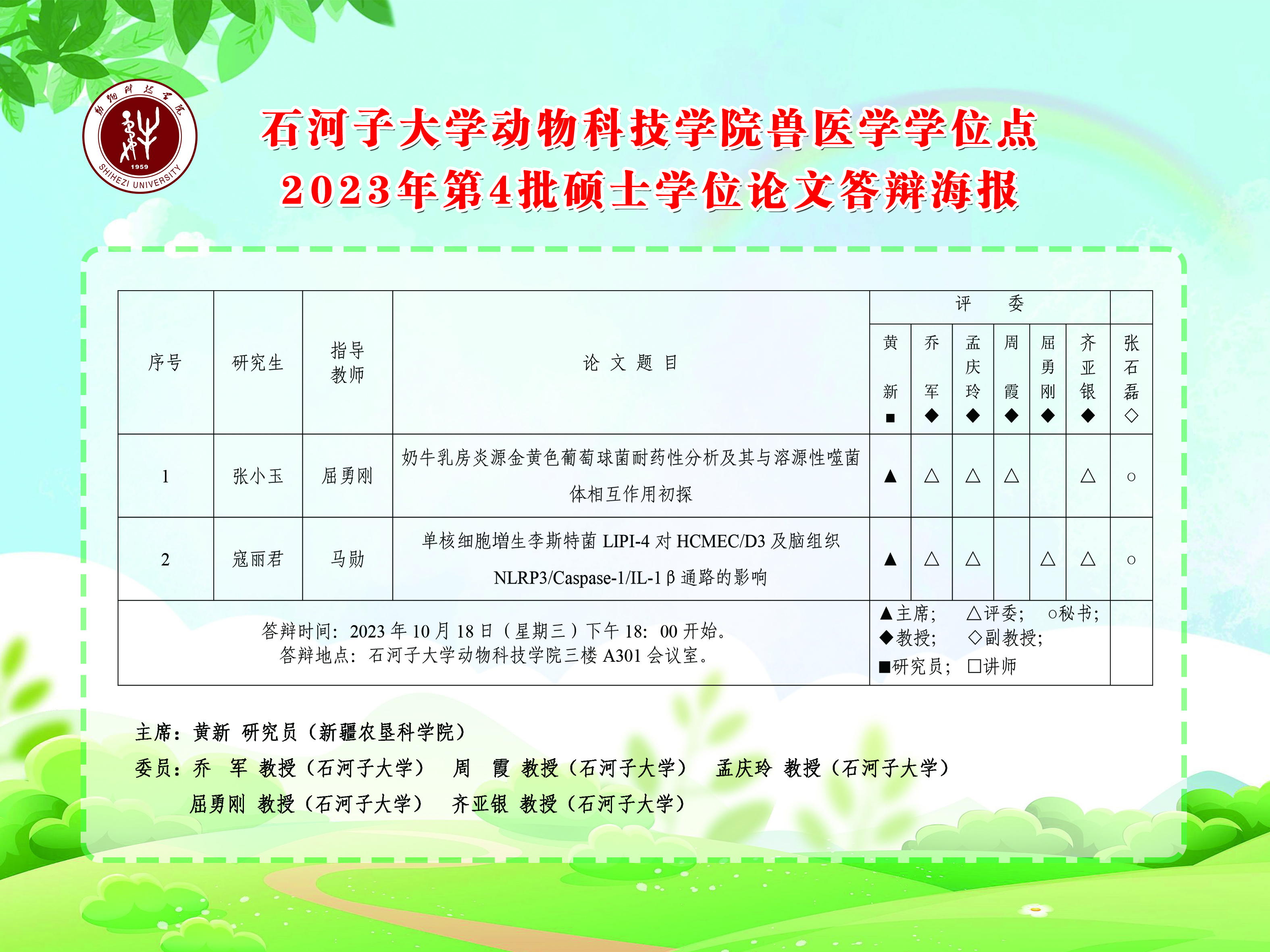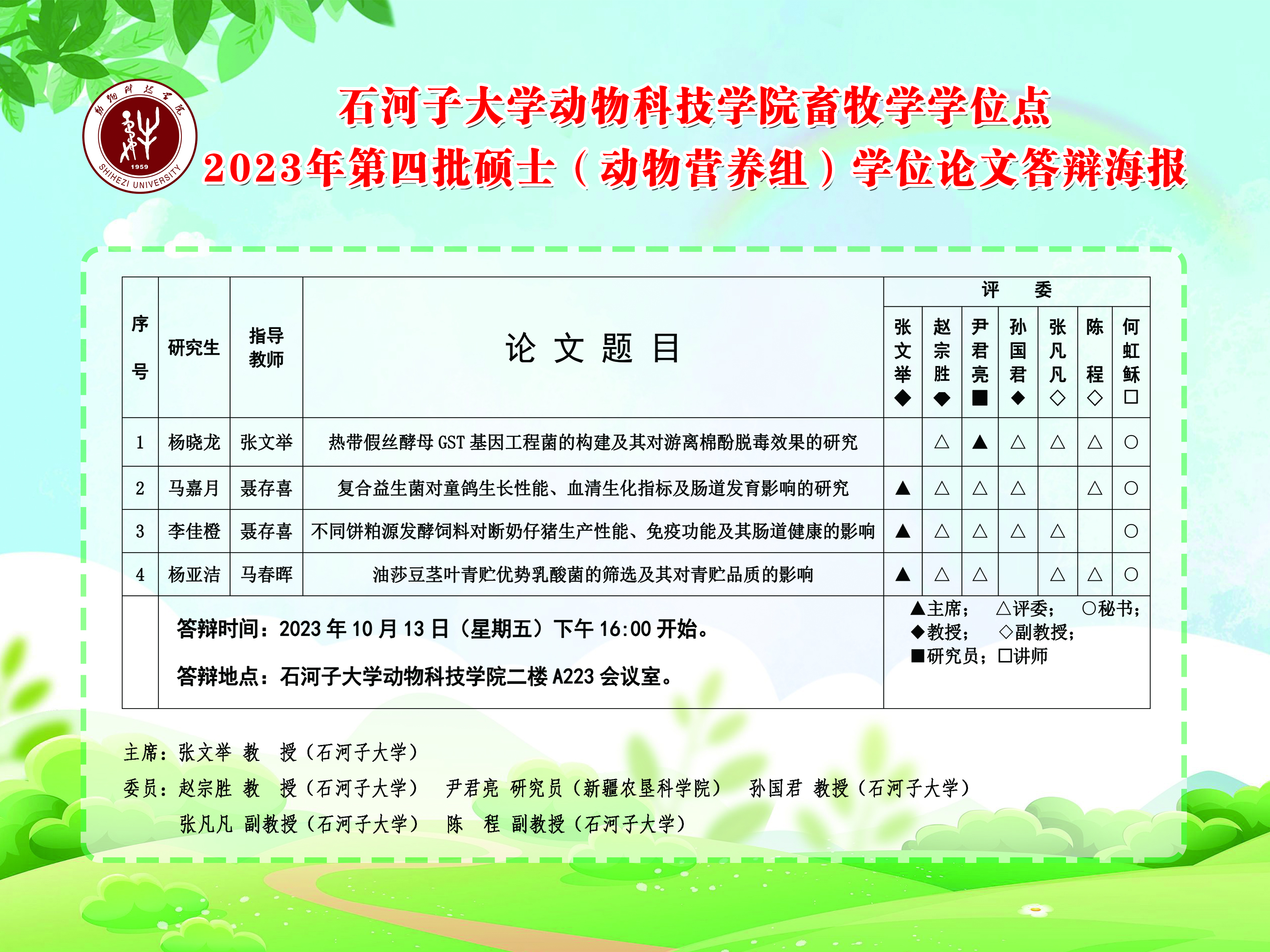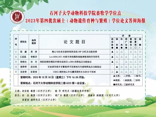 石河子大学动物科技学院研究生毕业论文答辩安排