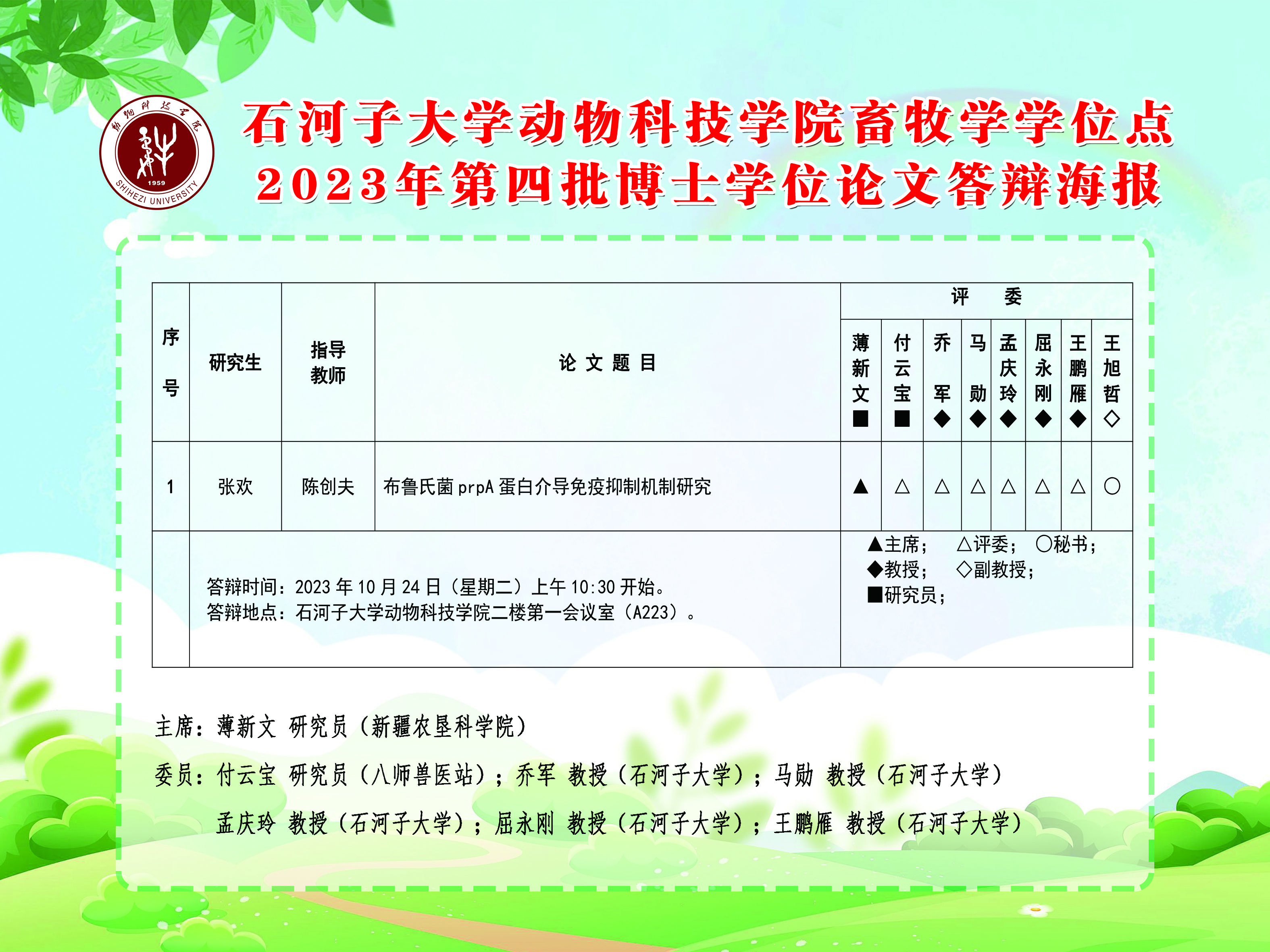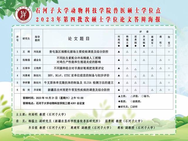 石河子大学动物科技学院研究生毕业论文答辩安排