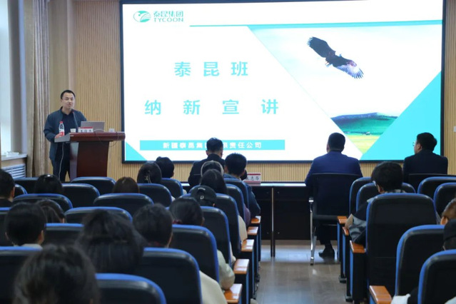 泰昆班纳新宣讲活动正式开始,新疆泰昆集团人事部经理王俊杰先生向同学们详细介绍了泰昆集团的集团概况和泰昆集团独特的企业文化——简单、靠谱、有温度。他表示,为了让同学们能够更便利地与企业进行接触,丰富自己的课余时间,泰昆集团搭建了泰昆班这样一个企业与同学间进行沟通的平台。泰昆班招募有意愿的各专业学生,开设多种多样丰富的主题活动,为同学们的课外生活增光添彩。