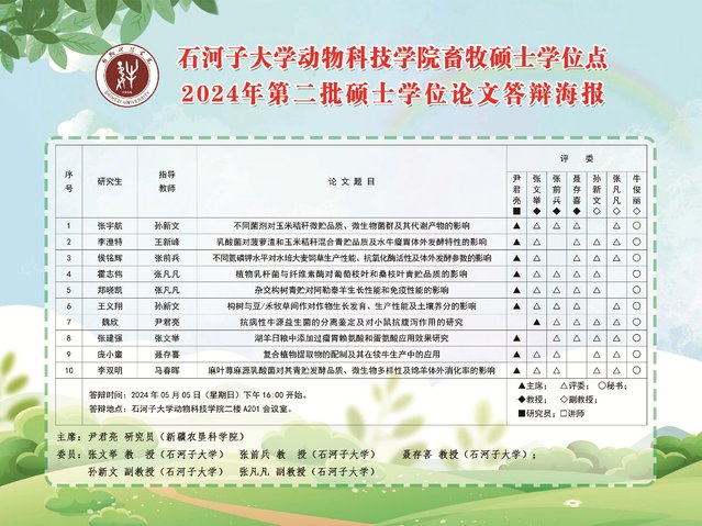 石河子大学动物科技学院2024年二批次畜牧(营养)硕士答辩海报