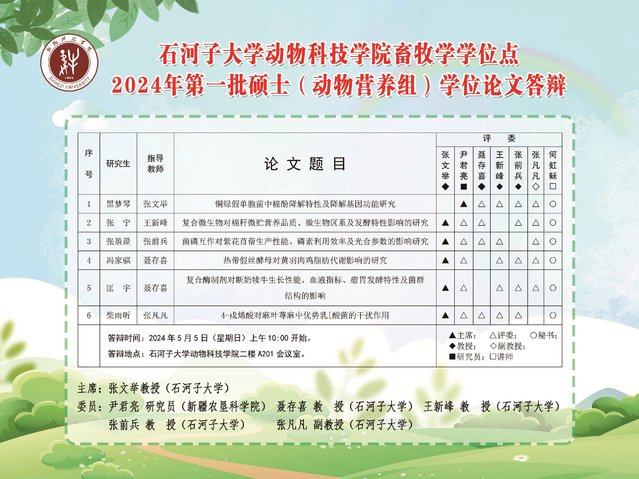 石河子大学动物科技学院2024年二批次畜牧学(营养)硕士答辩海报