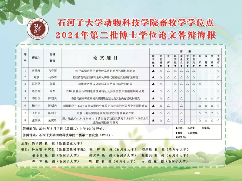 石河子大学动物科技学院2024年二批次畜牧学博士答辩海报
