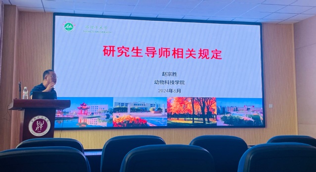为加强学院青年研究生导师队伍建设,动物科技学院2024年研究生新聘导师培训工作于6月27日下午在学院学术报告厅进行。学院近三年新聘的30余名硕、博导师参加了此次培训。