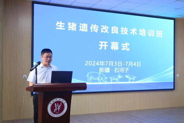 7月3日-4日,由自治区农业农村厅、兵团农业农村局主办,石河子大学和兵团生猪协会承办、兵团畜牧总站协办的“生猪遗传改良技术培训班”在石河子大学动物科技学院开幕。此次会议有国内近20位专家教授以及来自全疆各地生猪企业代表参加会议并现场交流。会议由动物科技学院党政办主任孙敬礼主持。