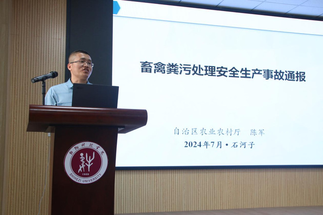 自治区农业农村厅畜牧局副局长陈军在致辞中强调:“这不仅是一次回顾和总结生猪产业发展的机会,更是一次展望和谋划未来的契机。”希望全体专家及学员能够有所收获、有所启发,继续开拓进取,推动生猪产业的发展。陈军就畜禽粪污处理安全生产进行分享,宣讲安全生产理念,提醒从业者避免防范粪污处理意外事故发生,消除安全隐患,保证人身安全。
