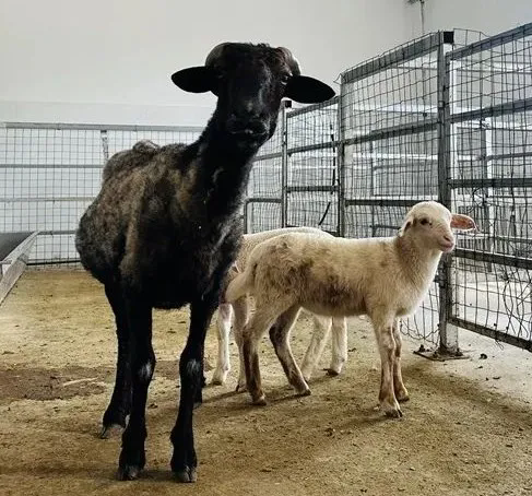 在石河子大学动物科技学院教学动物试验站里,这对羊宝宝和它们的“代孕妈妈”受到特别“待遇”——有自己的圈舍。“强强”“壮壮”蹦蹦跳跳地在“妈妈”身边转悠,当有陌生人靠近时,护犊的羊妈妈会迅速挡在羊宝宝们身前,发出咩咩的警告声。“腿上带黄色斑点的这只是1号(强强),先出生,出生时体重3.7公斤,满月体重是10.9公斤;2号(壮壮)晚十几分钟出生,出生体重3.3公斤,满月体重是10.6公斤。它们都是‘男孩’,目前身体健康,长势良好,增重进度受到了炎热天气的影响。”