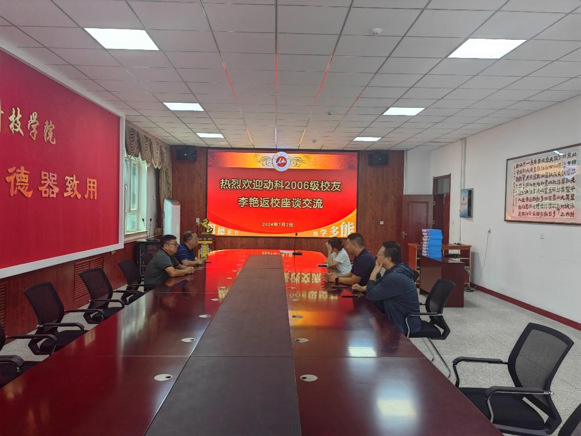 会上,动物科技学院副院长赵宗盛代表学院向李艳的来访表示热烈欢迎,并表示学院的发展离不开校友的鼎力支持,学院将通过多种形式进一步加强与校友的联系,使校友成为学院教学科研中的有效资源和重要力量,副院长盛金良介绍了学院近些年来的发展变化及现状。