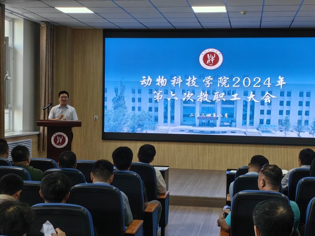 8月29日下午,动物科技学院在学术报告厅召开2024年第六次教职工大会,学院领导班子成员和全体教职工参会,大会由院长张辉主持。