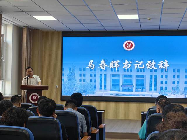 马春晖书记在致辞中指出,学院近几年来势头良好,但是横向同兄弟院校相比还有不足,他通过近两年自然基金项目的申报数量为例,指出学院科研工作还有较大提升空间;他认为学院教学工作有起色,部分教师能够积极参加各级各类教学竞赛并获得好成绩,但是也存在实践教学课时不足的问题;他对学院今后的努力方向提出了自己的建议:通过对照高水平高校发现我们的差距,同时眼睛要向西看,把中亚的事情办好。最后马春晖宣布了学院领导的工作分工情况。