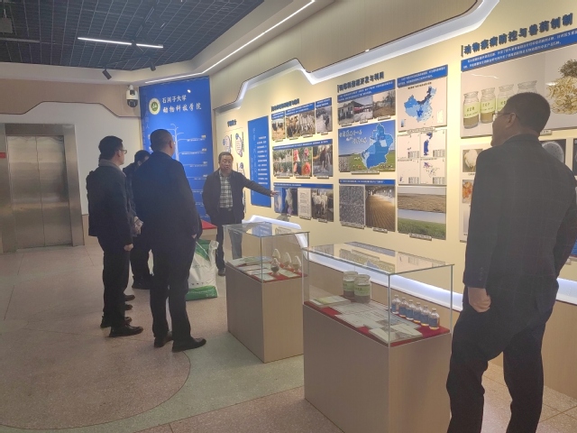 2024年11月17日上午,动物科技学院2002届毕业生、兵团监狱管理局蒋云雷副处长来到学院,与学院副院长赵宗胜、党政办主任孙敬礼交流座谈。赵宗胜副院长向蒋云雷介绍了近年来学院的发展情况,并与孙敬礼主任一起陪同蒋云雷参观了动科楼的校园文化墙和教学区,以及P2实验室。