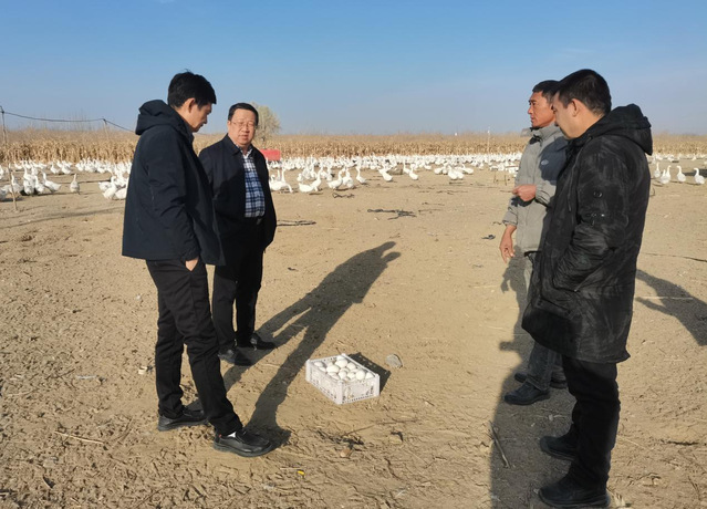 赵宗胜一行到种鹅场,对种鹅场的经济效益前景进行了详细询问,指出种鹅场在养殖过程中存在的问题并给予纠正。