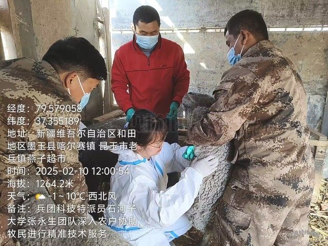 2025年2月10日,石河子大学动物科技学院科技特派员团队《多胎多羔肉羊繁育技术体系集成与示范》项目组成员张永生老师等前往第十四师47团,开展肉羊繁育相关技术需求的调研工作。此次调研旨在通过科技手段提升当地肉羊养殖效益,助力牧民增收致富。