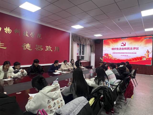 2025年2月27日,动物医学系本科生党支部在学院第二会议室召开组织生活会和民主评议大会。支部全体党员参会,学院党委副书记郭玉堂参加会议。