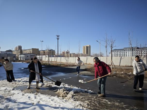 近期,北苑新区各学院集中开展化学品报废工作,暂存库门口因朝北背阴,日间化雪慢夜间有结冰,道路湿滑难行,存在化学品运输过程中倾倒、泼洒等安全隐患。机关教辅教工党支部立足实际、主动作为,将主题党日活动与校园安全风险防控紧密结合,组织党员志愿者开展积雪清扫行动,全力消除潜在风险。尽管春寒料峭,但党员们干劲十足,发扬奉献精神,经过近两小时的劳动,将结冰湿滑的路面清理出安全道路,为化学品安全转运提供了坚实保障。