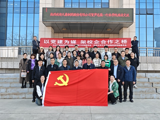 2025年4月3日,中共天康制药股份有限公司第三党支部书记贺笋率队赴动物科技学院开展党建共建活动。院长张辉、党委副书记郭玉堂、副院长盛金良等领导班子成员及教师代表出席活动。此次共建以党建引领、资源共享、合作共赢为宗旨,开创了校企协同发展的新局面。
