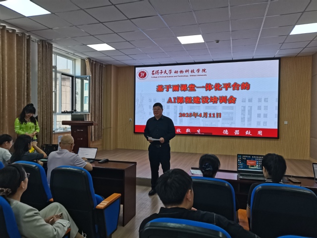 4月11日,动物科技学院联合石河子大学教学评估中心(教师发展中心)在学院学术报告厅举办了以“基于雨课堂一体化平台的 AI 课程建设”为主题的培训会。此次培训聚焦人工智能技术与教育教学深度融合,特邀学堂在线平台培训师孟玉婕担任主讲,为全院教师带来了一场智能教学能力提升的专题培训。