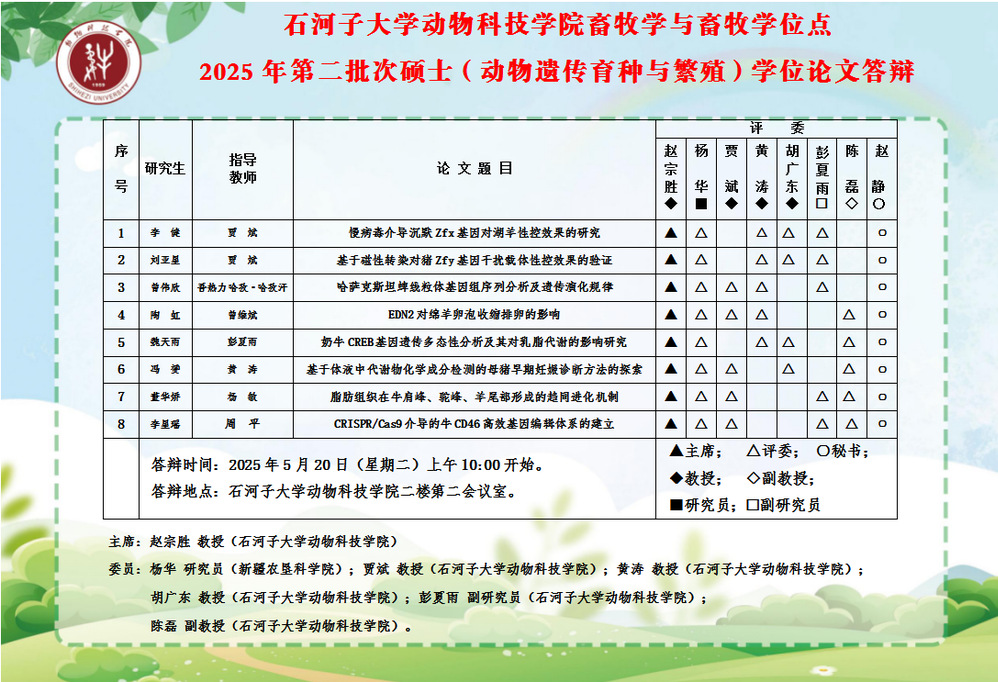 石河子大学动物科技学院畜牧学与畜牧学位点2025年第二批次硕士(动物遗传育种与繁殖)学位论文答辩