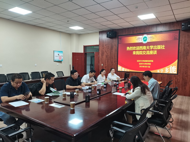 5月13日上午,石河子大学动物科技学院联合农学院与西南大学出版社,共同举办了一场聚焦新农科教材编写工作的座谈会。西南大学出版社高等教育分社社长伯古娟、副主编李勇亲临现场,动物科技学院副院长盛金良、农学院副院长王江海,以及两院专业负责人、教研室主任、授课教师代表等围绕新农科教材建设展开交流。