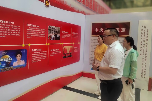 本次展览通过“作风建设强根基”“八项规定树新风”“警钟长鸣筑防线”“廉洁教育凝心魂”四个部分,再现党的纪律建设历史沿革,展示了我党党风廉政建设系列成果。