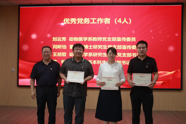 “这份荣誉既是肯定,更是鞭策。”优秀共产党员代表刘云芳在发言中表示,我们将始终牢记“为党育人、为国育才”的初心使命,在畜牧学科建设和服务兵团发展中勇担重任。