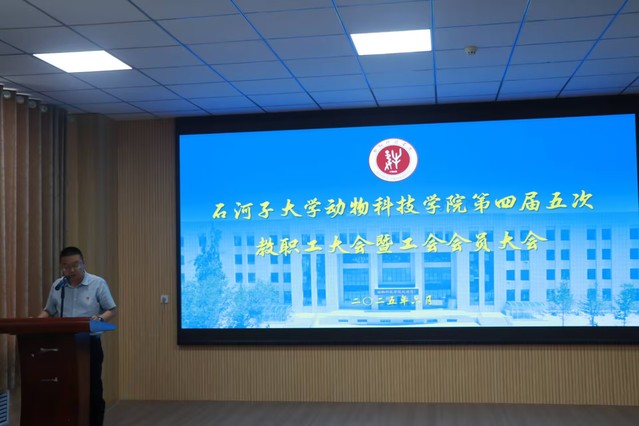 2025年6月27日下午,石河子大学动物科技学院第四届五次教职工大会暨工会会员大会在学院学术报告厅隆重召开。学院党政领导班子成员及全体教职工齐聚一堂,共商学院发展大计。大会由学院工会主席郭玉堂主持。