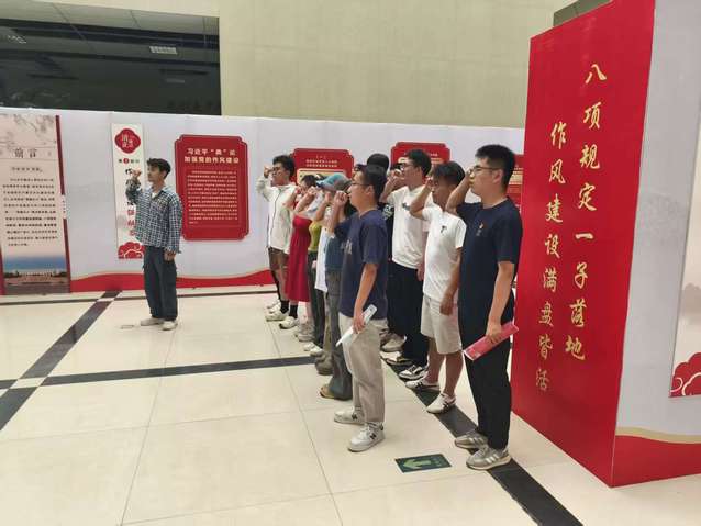 参观结束后,全体党员面向党旗庄严列队,紧握右拳重温入党誓词,铿锵誓言在展厅回荡,进一步强化了“以廉为镜、正身笃行”的政治自觉。