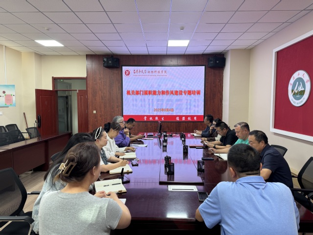 为全面提升机关工作人员的政治素养与业务能力,9月4日下午,学院组织开展了履职能力与作风建设专题培训,机关全体人员参加。
