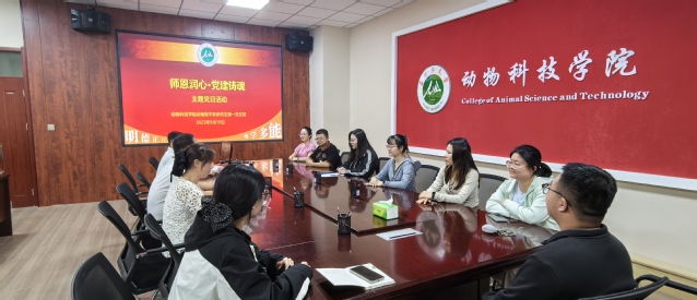 在第41个教师节到来之际,为传承尊师重教传统、筑牢党建育人根基,2025年9月10日,动物医学系研究生第一党支部以“师恩润心·党建铸魂”为主题,组织全体党员开展主题党日活动。活动由党支部书记孙志华主持,通过理论研学、师生恳谈等环节,推动党员同志深化立德树人责任意识,凝聚党建引领成长的奋进力量。