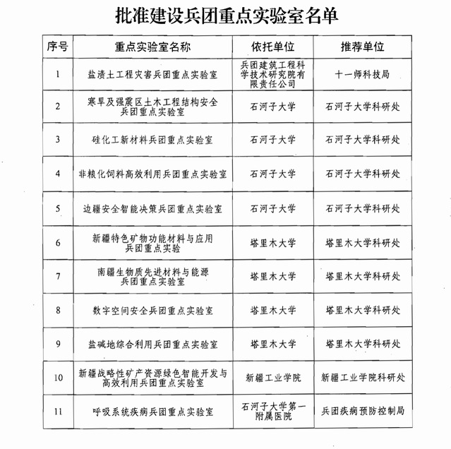 近日,兵团科技局公布了2025年度拟获批建设的兵团重点实验室名单,“非粮化饲料高效利用兵团重点实验室”(下称重点实验室)成功获批立项。重点实验室由石河子大学动物科技学院牵头申报,新疆农垦科学院、中国农业大学共建。重点实验室的成功获批标志着学校在非粮饲料资源化利用领域的研究获得重要认可和重大突破,为新疆地区饲料资源开发和畜牧业的可持续发展再添新平台。